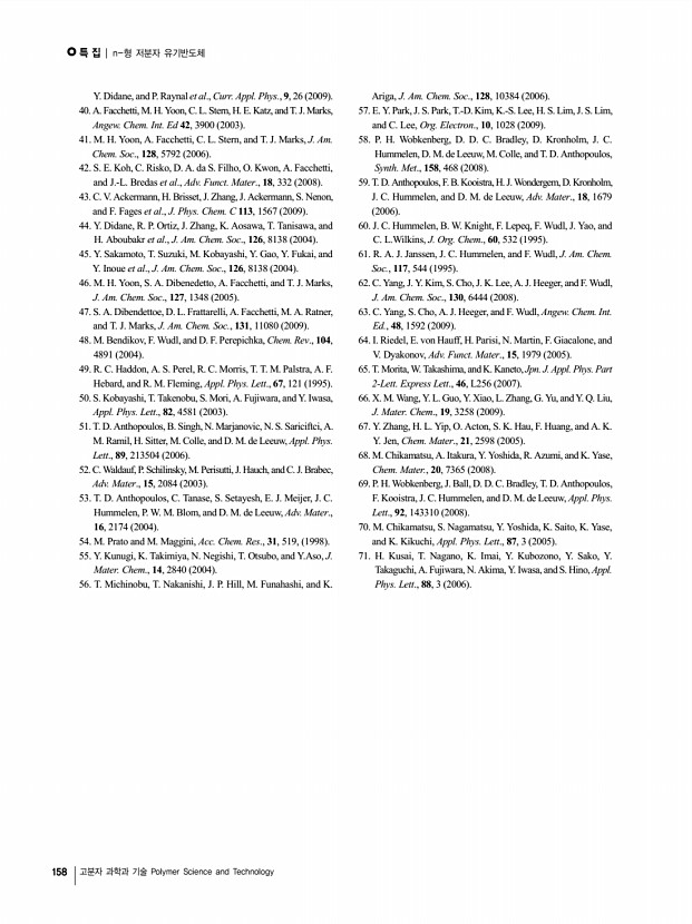 특 집 | n-형 저분자 유기반도체 158 고분자 과학과 기술 Polymer Science and Technology Y. Didane, and P. Raynal et al., Curr. Appl. Phys., 9, 26 2009 40. A. Facchetti, M. H. Yoon, C. L. Stern, H. E. Katz, and T. J. Marks, Angew. Chem. Int. Ed 42, 3900 2003 41. M. H. Yoon, A. Facchetti, C. L. Stern, and T. J. Marks, J. Am. Chem. Soc., 128, 5792 2006 42. S. E. Koh, C. Risko, D. A. da S. Filho, O. Kwon, A. Facchetti, and J.-L. Bredas et al., Adv. Funct. Mater., 18, 332 2008 43. C. V. Ackermann, H. Brisset, J. Zhang, J. Ackermann, S. Nenon, and F. Fages et al., J. Phys. Chem. C 113, 1567 2009 44. Y. Didane, R. P. Ortiz, J. Zhang, K. Aosawa, T. Tanisawa, and H. Aboubakr et al., J. Am. Chem. Soc., 126, 8138 2004 45. Y. Sakamoto, T. Suzuki, M. Kobayashi, Y. Gao, Y. Fukai, and Y. Inoue et al., J. Am. Chem. Soc., 126, 8138 2004 46. M. H. Yoon, S. A. Dibenedetto, A. Facchetti, and T. J. Marks, J. Am. Chem. Soc., 127, 1348 2005 47. S. A. Dibendettoe, D. L. Frattarelli, A. Facchet...