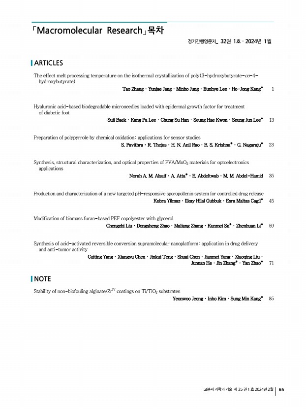제목 : 「Macromolecular Research」32권 1, 2호 목차