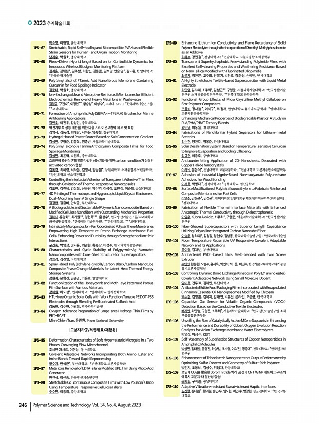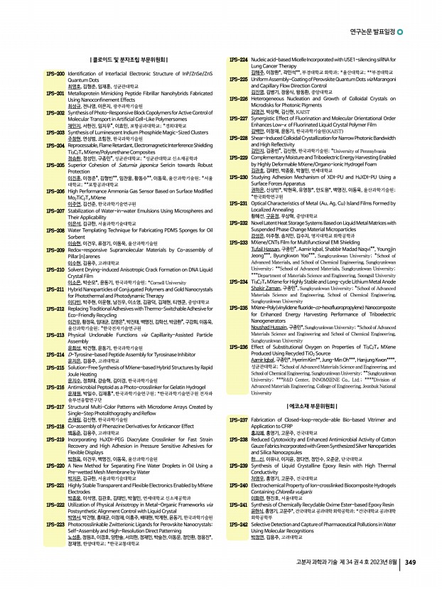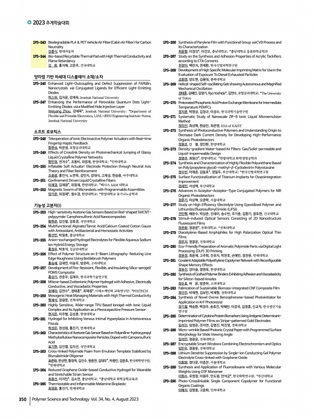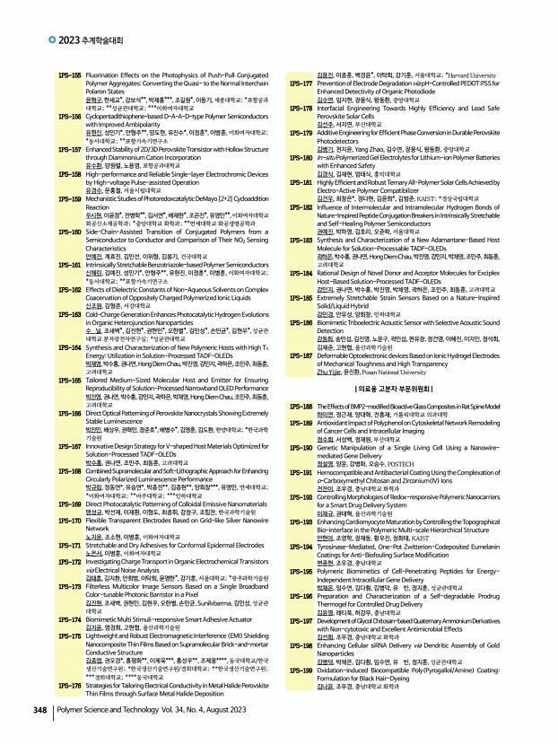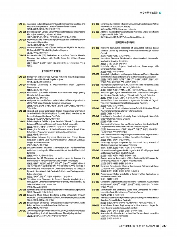 ...하은, 조민주, 최동훈, 고려대학교 1PS-165 Tailored Medium-Sized Molecular Host and Emitter for Ensuring Reproducibility of Solution-Processed Narrowband OLED Performance 박진영, 권나연, 박수홍, 강민지,곽하은,박채영,HongDiemChau,조민주, 최동훈, 고려대학교 1PS-166 Direct Optical Patterning of Perovskite Nanocrystals Showing Extremely Stable Luminescence 박진민, 배상우, 권혁민, 장준호*, 배병수*, 김영훈, 김도환, 한양대학교; *한국과학 기술원 1PS-167 Innovative Design Strategy for V-shaped Host Materials Optimized for Solution-Processed TADF-OLEDs 박수홍, 권나연, 조민주, 최동훈, 고려대학교 1PS-168 Combined Supramolecular and Soft-Lithographic Approachfor Enhancing Circularly Polarized Luminescence Performance 박규림, 정동연*, 유승연*, 박종진**, 김종현**, 양회창***, 유영민, 연세대학교; *이화여자대학교; **아주대학교; ***인하대학교 1PS-169 Direct Photocatalytic ...