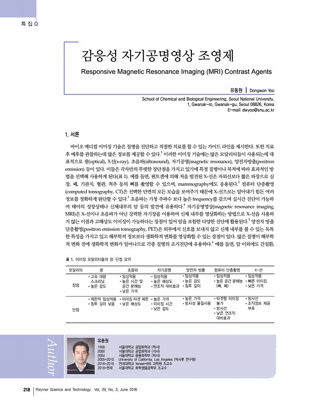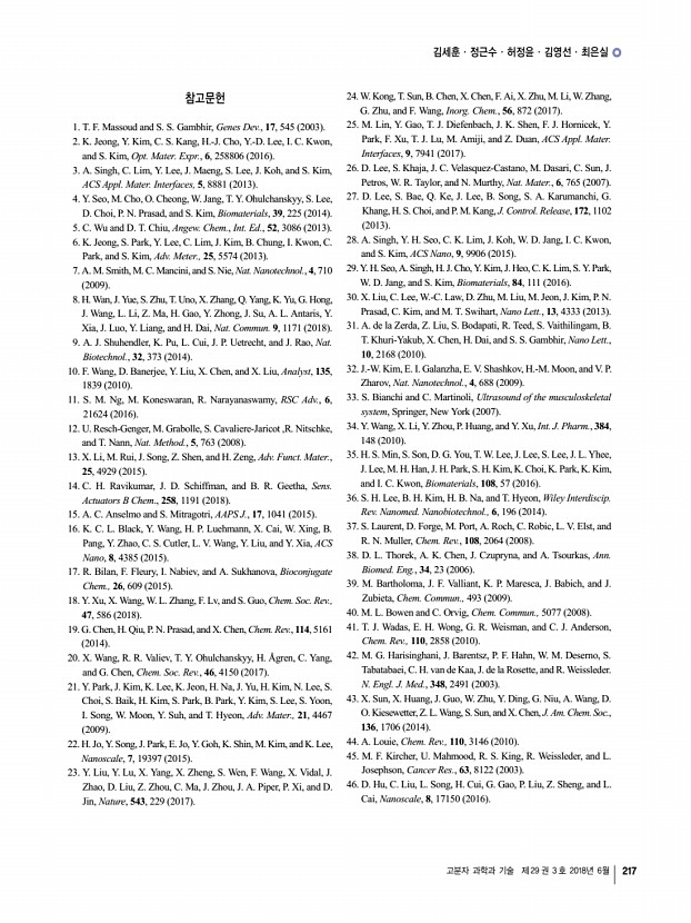 김세훈ㆍ정근수ㆍ허정윤ㆍ김영선ㆍ최은실 고분자 과학과 기술 제 29 권 3 호 2018년 6월 217 참고문헌 1. T. F. Massoud and S. S. Gambhir, Genes Dev., 17, 545 2003 2. K. Jeong, Y. Kim, C. S. Kang, H.-J. Cho, Y.-D. Lee, I. C. Kwon, and S. Kim, Opt. Mater. Expr., 6, 258806 2016 3. A. Singh, C. Lim, Y. Lee, J. Maeng, S. Lee, J. Koh, and S. Kim, ACS Appl. Mater. Interfaces, 5, 8881 2013 4. Y. Seo, M. Cho, O. Cheong, W. Jang, T. Y. Ohulchanskyy, S. Lee, D. Choi, P. N. Prasad, and S. Kim, Biomaterials, 39, 225 2014 5. C. Wu and D. T. Chiu, Angew. Chem., Int. Ed., 52, 3086 2013 6. K. Jeong, S. Park, Y. Lee, C. Lim, J. Kim, B. Chung, I. Kwon, C. Park, and S. Kim, Adv. Meter., 25, 5574 2013 7. A. M. Smith, M. C. Mancini, and S. Nie, Nat. Nanotechnol., 4, 710 2009 8. H. Wan, J. Yue, S. Zhu, T. Uno, X. Zhang, Q. Yang, K. Yu, G. Hong, J. Wang, L. Li, Z. Ma, H. Gao, Y. Zhong, J. Su, A. L. Antaris, Y. Xia, J. Luo, Y. Liang, and H. Dai, Nat. Commun. 9, 1171 2018 9. A. J. ...