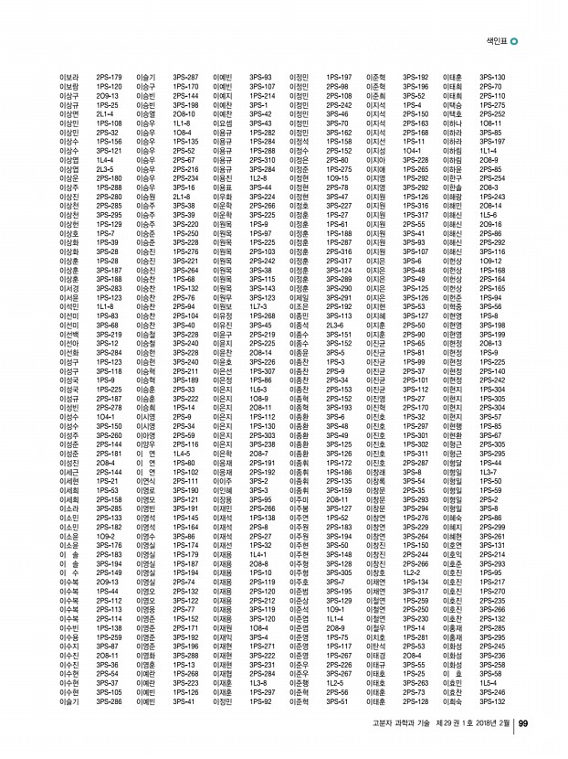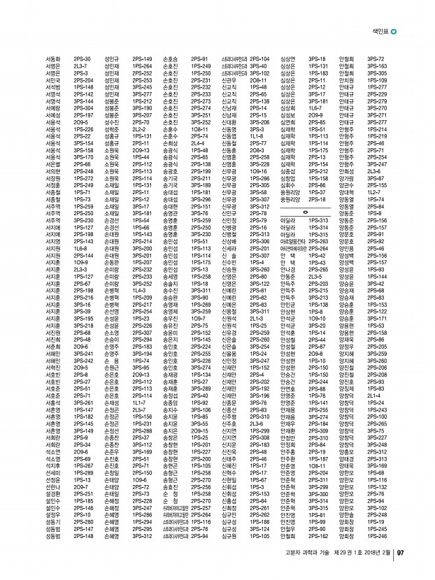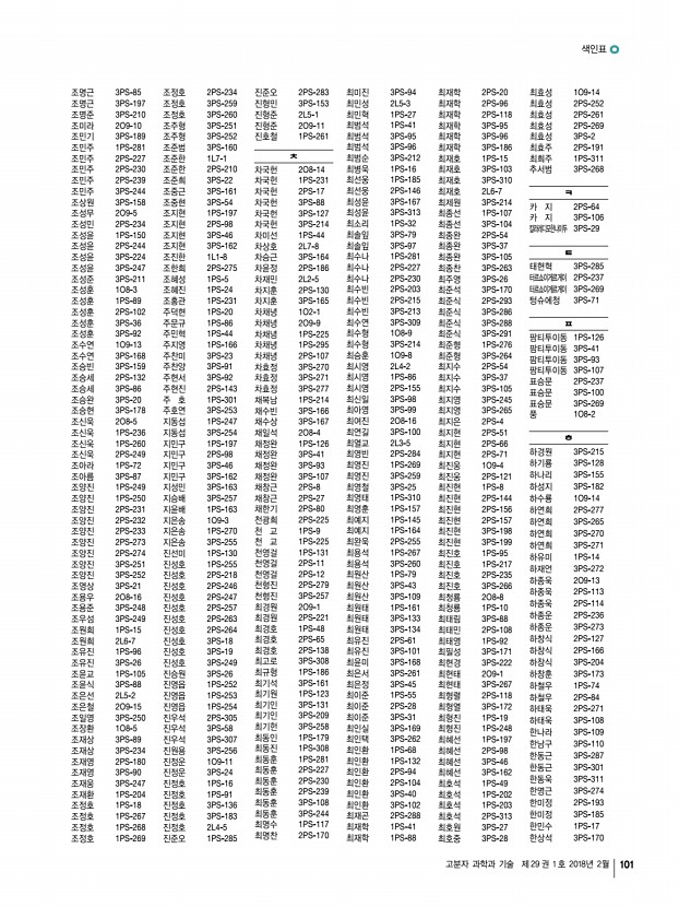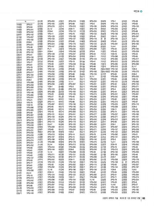 색인표 고분자 과학과 기술 제 29 권 1 호 2018년 2월 93 ᆨ 가재원 2PS-21 가재원 3PS-94 가재원 3PS-241 가재원 3PS-242 감현우 2PS-142 강가량 1PS-207 강경민 1PS-192 강경호 2O8-6 강경호 2PS-221 강규현 1PS-38 강다희 1PS-145 강다희 2PS-152 강동국 2PS-51 강동국 2PS-130 강동국 3PS-165 강동규 1PS-77 강동규 2PS-61 강동원 1PS-78 강동훈 3PS-82 강동휘 2PS-217 강면구 3PS-194 강명곤 3PS-271 강문성 2O8-2 강문성 1PS-269 강문성 3PS-259 강문성 3PS-260 강문성 3PS-311 강민경 1PS-146 강민경 1PS-285 강민균 1PS-241 강민지 1PS-21 강병권 1PS-79 강병훈 1O9-16 강병훈 1PS-286 강병훈 2PS-305 강병훈 3PS-58 강병훈 3PS-307 강병훈 3PS-312 강보석 3PS-219 강봉주 3PS-228 강상욱 1PS-249 강상욱 1PS-250 강상욱 2PS-231 강상욱 2PS-232 강상욱 2PS-233 강상욱 2PS-273 강상욱 2PS-274 강상욱 3PS-251 강상욱 3PS-252 강상윤 1PS-80 강새은 1PS-81 강석우 1PS-82 강석우...