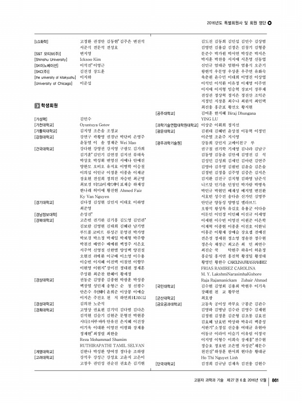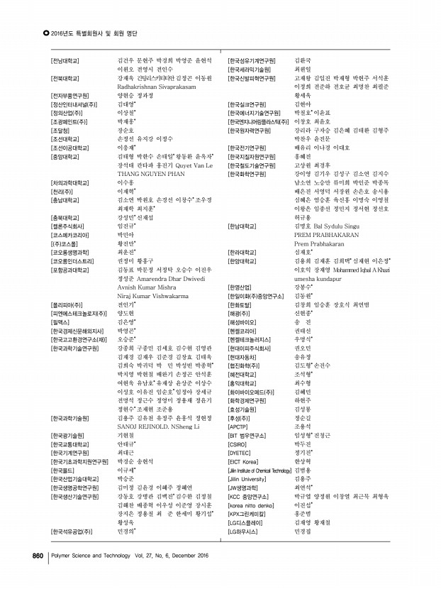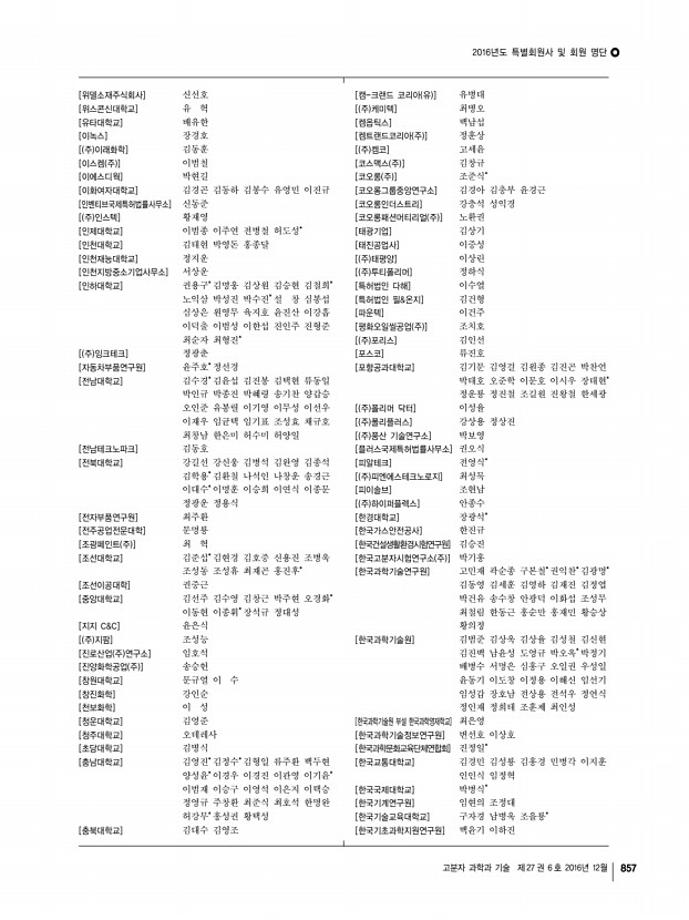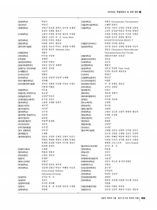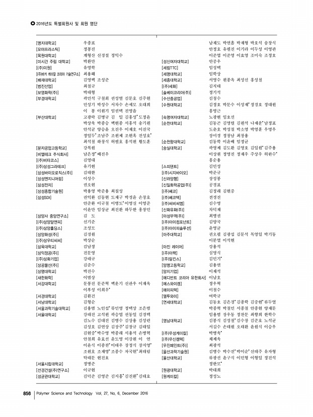 ... 홍창민 [삼양사 중앙연구소] 김 도 [ 주 삼양알앤피] 신기준 [ 주 삼양홀딩스] 조성모 [삼양화성 주 ] 김경원 [ 주 삼우티씨씨] 박상순 [삼육대학교] 김남정 [삼익정공 주 ] 진문영 [ 주 삼화기업] 강태규 [상공물산 주 ] 김준수 [상명대학교] 박진수 [새한화학] 이범상 [서강대학교] 문봉진 문준혁 백운기 신관우 이재욱 이후성 이희우* [서경대학교] 김환건 [서남대학교] 김형순 [서울과학기술대학교] 김용범 노인섭* 류민영 정택상 조은범 [서울대학교] 강태진 고석원 곽승엽 권동일 김경택 김노수 김대진 김병수 김상용 김성련 김성호 김연상 김장주* 김창규 김태일 김현중* 박수영 박종래 서용석 손병혁 안철희 유효선 윤도영 이강원 이 연 이윤식 이종찬* 이태우 장정식 장지영* 조원호 조재영* 조종수 차국헌* 최태림 탁태문 현진호 [서울시립대학교] 정병준 [...