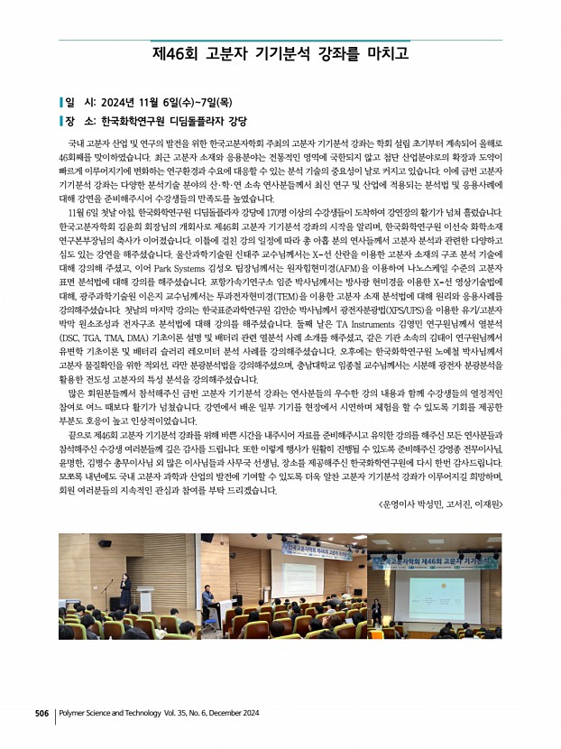 ...감 이후에는 접수를 받지 않습니다. · 초 록 접 수 한국고분자학회 홈페이지 www.polymer.or.kr · 일반발표분야 1. 고분자 합성차세대 기능성 소재를 위한 고분자 설계와 정밀합성 고영운 I 전남대학교 yeongunko@jnu.ac.kr, 062-530-1774 김명웅 I 인하대학교 mkim233@inha.ac.kr, 032-860-7680 2. 기능성 고분자스마트 계면제어고분자 코팅 소재 이상호 I 동국대학교 slee24@dgu.ac.kr, 02-2260-3707 서명은 I 한국과학기술원 seomyungeun@kaist.ac.kr, 042-350-2814 3. 고분자가공/복합재료/재활용섬유 강화 고분자 복합 소재 홍성우 I 한국생산기술연구원 swhong@kitech.re.kr, 041-589-8675 김진철 I 한국화학연구원 jckim81@krict.re.kr, 052-241-6065 4. 고분자구조 및 물성지속가능한 사회를 위한 소재 구조-물성 연구 최신 동향 박재홍 I 이화여자대학교 jaehong@ewha.ac.kr, 02-3277-4706 여현욱 I 경북대학교 yeo@knu.ac.kr, 053-950-5905...